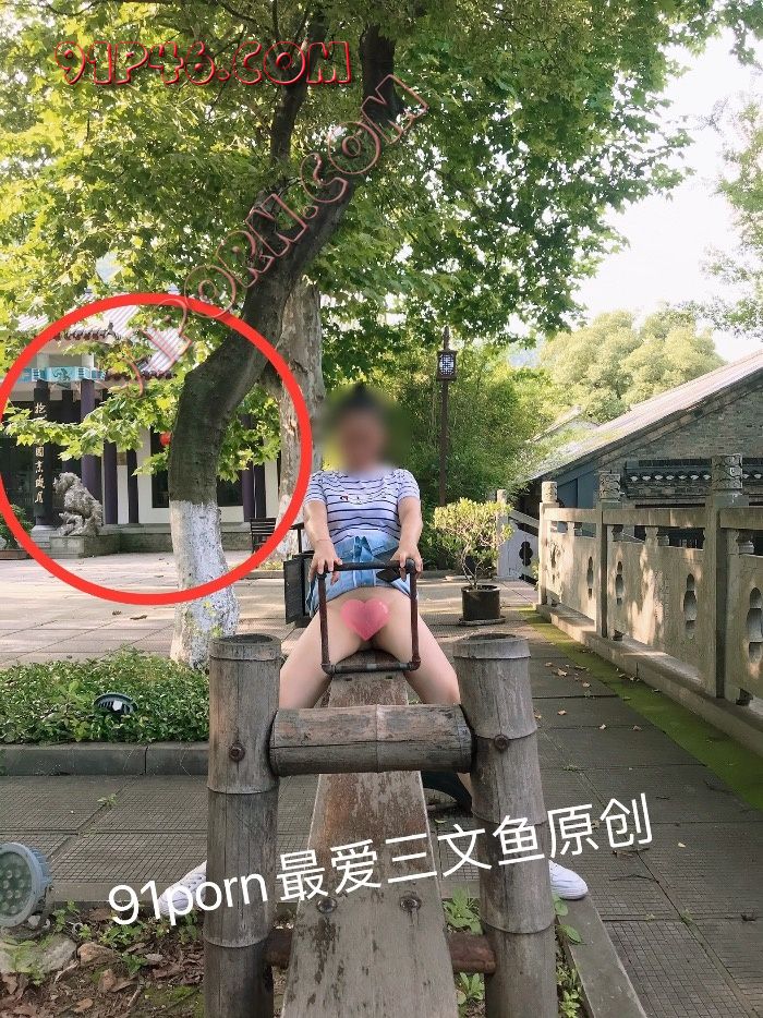 这张照片中老婆面对的是一个景区餐厅,餐厅门口有几个供游客休息拍照的秋千、跷跷板、长椅等,餐厅的落地玻璃门窗紧闭,门窗玻璃是茶色的,外面看不见里面,但已经过了吃饭时间,而且疫情期间景区很少人,所以老婆玩着餐厅门口的各种秋千等休闲设施,大胆的面对餐厅展开双腿……