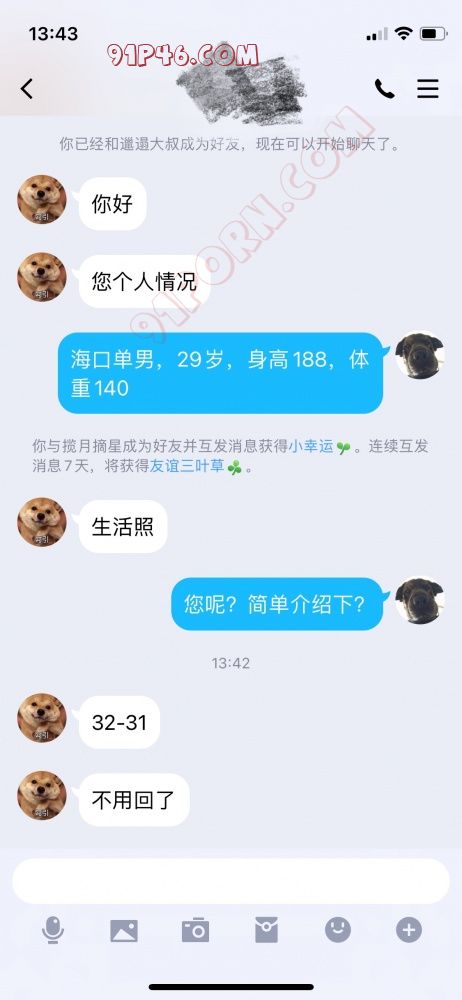 以后请您素质交流,我不是精虫上脑的屌丝,我不缺女人,请您有点素质!