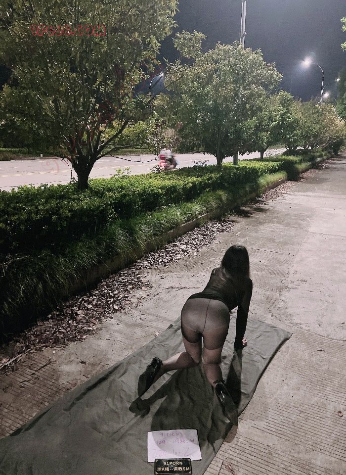 母狗大长腿黑丝高跟鞋马路露出